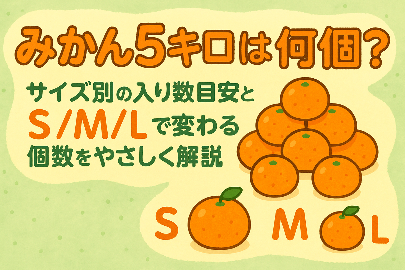 みかん5kgの入り数はサイズで変わります。代表例として、S=約55〜65個/M=約45〜55個/L=約35〜45個が“生産者が公表する目安”として確認できます。